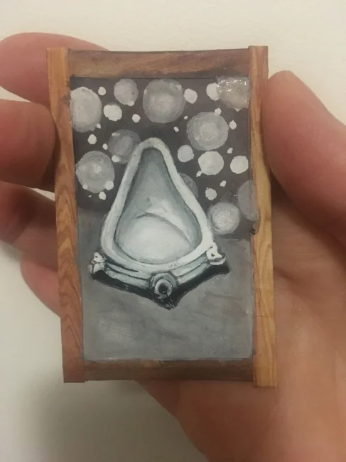 Toilet bowl boy, 2017, gouache on paper, 6 x 4 cm.